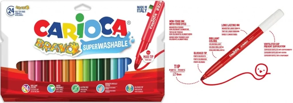 CARİOCA BRAVO SÜPER YIKANABİLİR KALIN UÇLU KEÇELİ BOYA KALEMİ 24'LÜ 42763